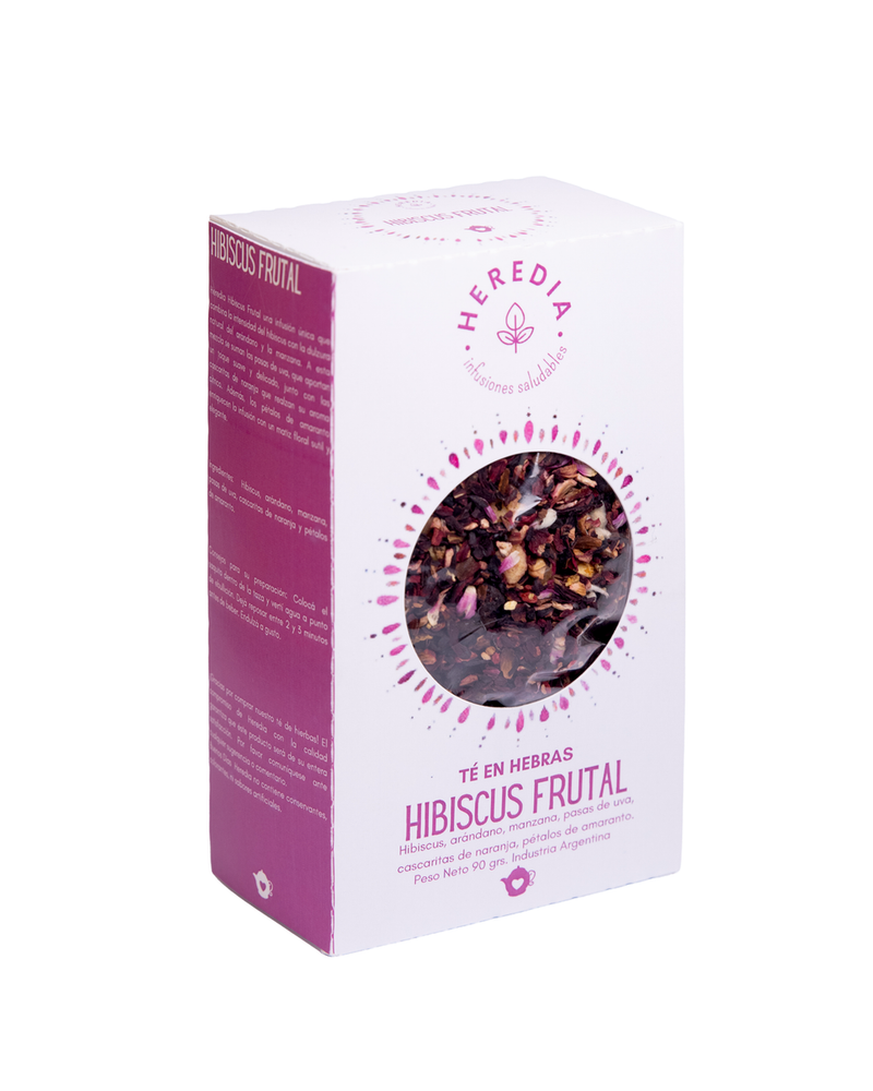 Heredia Hibiscus Frutal una infusión única que combina la intensidad del hibiscus con la dulzura natural del arándano y la manzana. A esta mezcla se suman las pasas de uva, que aportan un toque suave y delicado, junto con las cascaritas de naranja que realzan su aroma cítrico. Además, los pétalos de amaranto enriquecen la infusión con un matiz floral sutil y elegante.